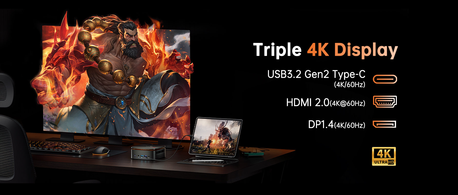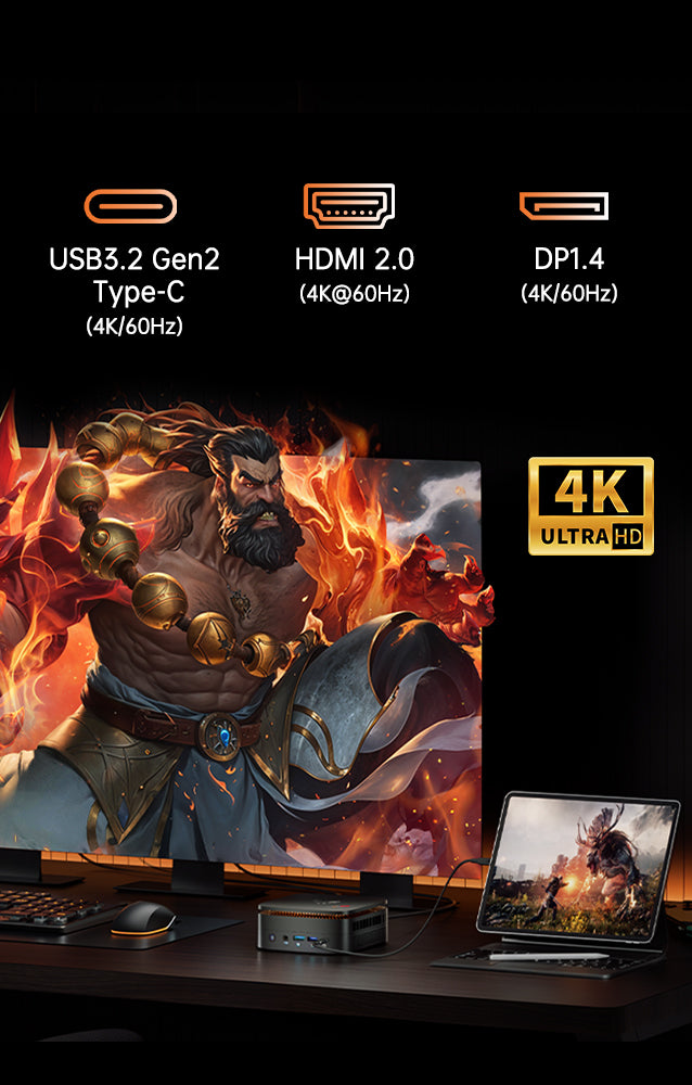 | Video Output | HDMI 2.0*1 (4K@60Hz) DP1.4*1 (4K@60Hz) USB3.2 Gen2 Type-C*1 (4K@60Hz) |
