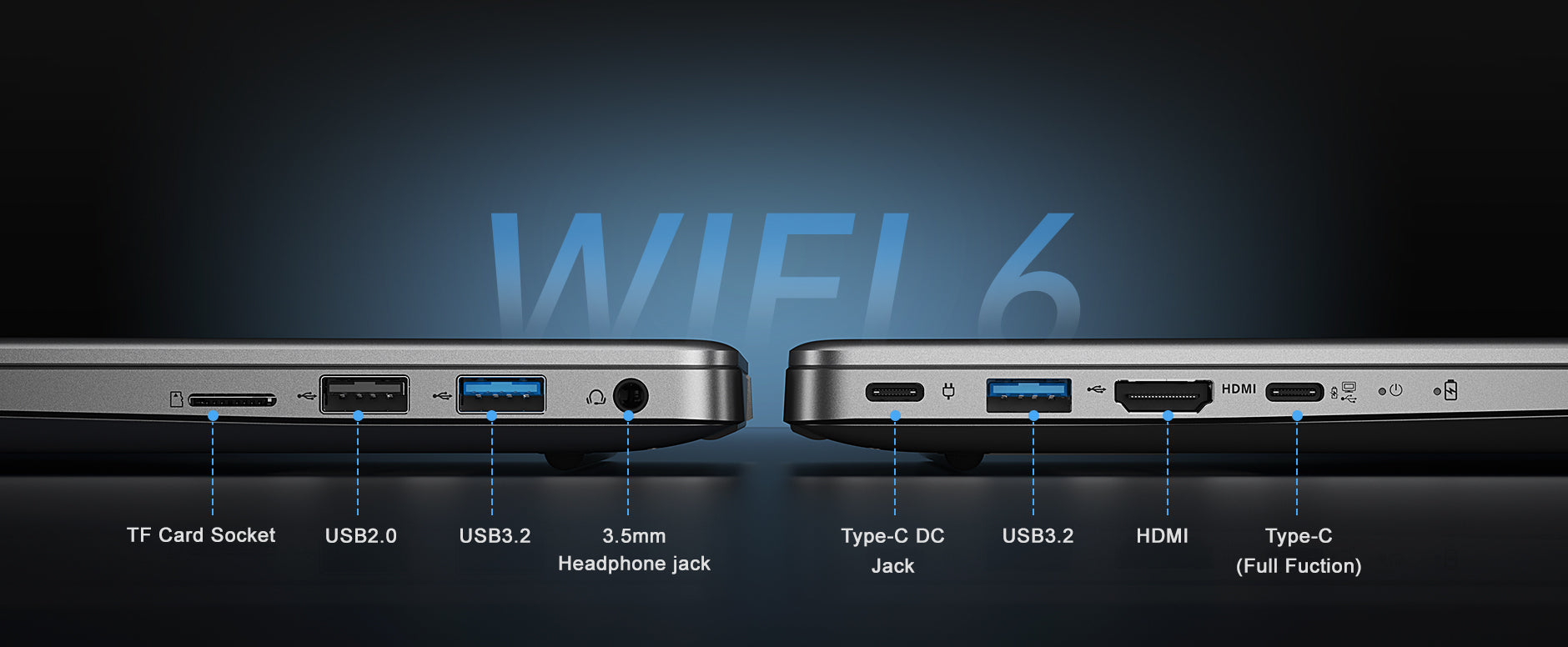 | Ports & Buttons | USB 3.2 *2 USB 2.0 *1 3.5mm standard headphone jack *1 HDMI 1.4 *1 TYPE-C IN *1 Type-C(full function) *1 TF card slot *1 Keyhole*1 |