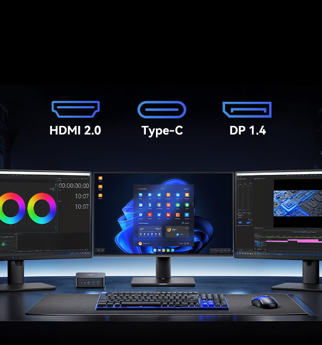 HDMI 2.0 * 1 USB3.2 Gen2 Type-C*1 DP1.4b* 1 3.5mm Phone Jack * 1 |