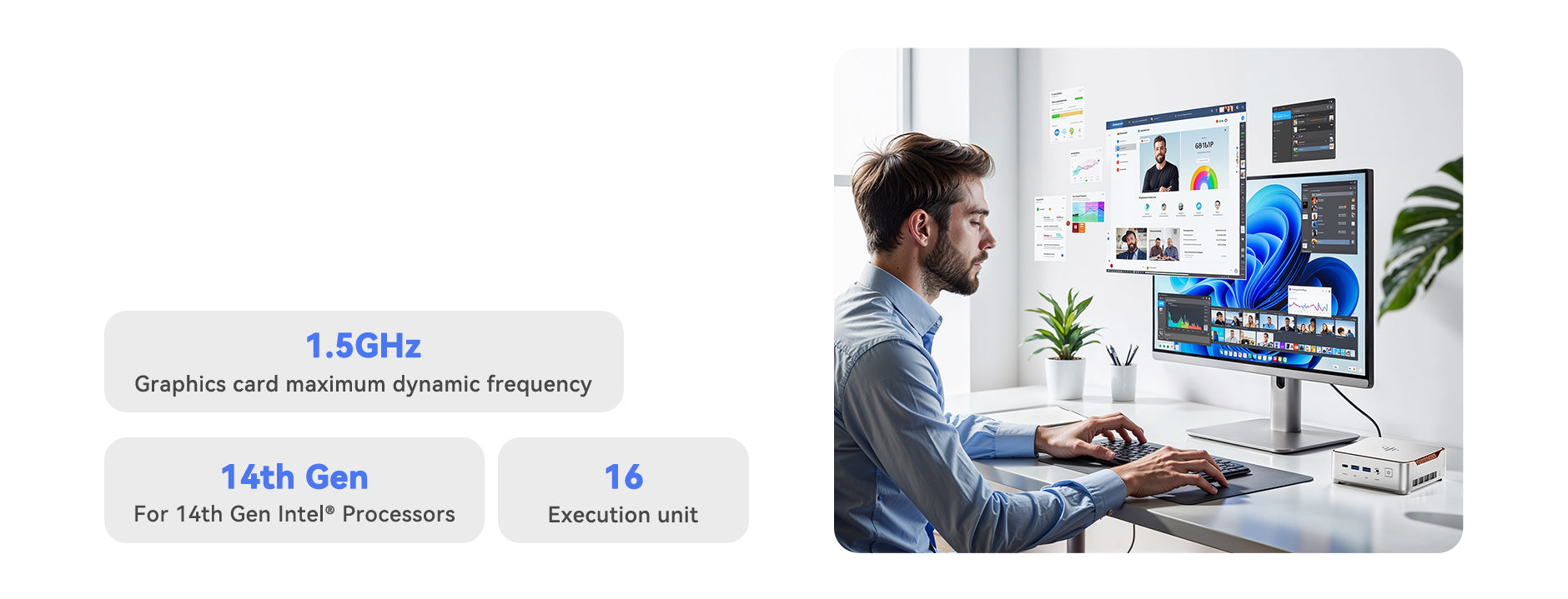 | Graphics | Intel® UHD Graphics for 14th Gen Intel® Processors(Graphics Max Dynamic Frequency 1.50GHz, Execution Units 16EUs) |