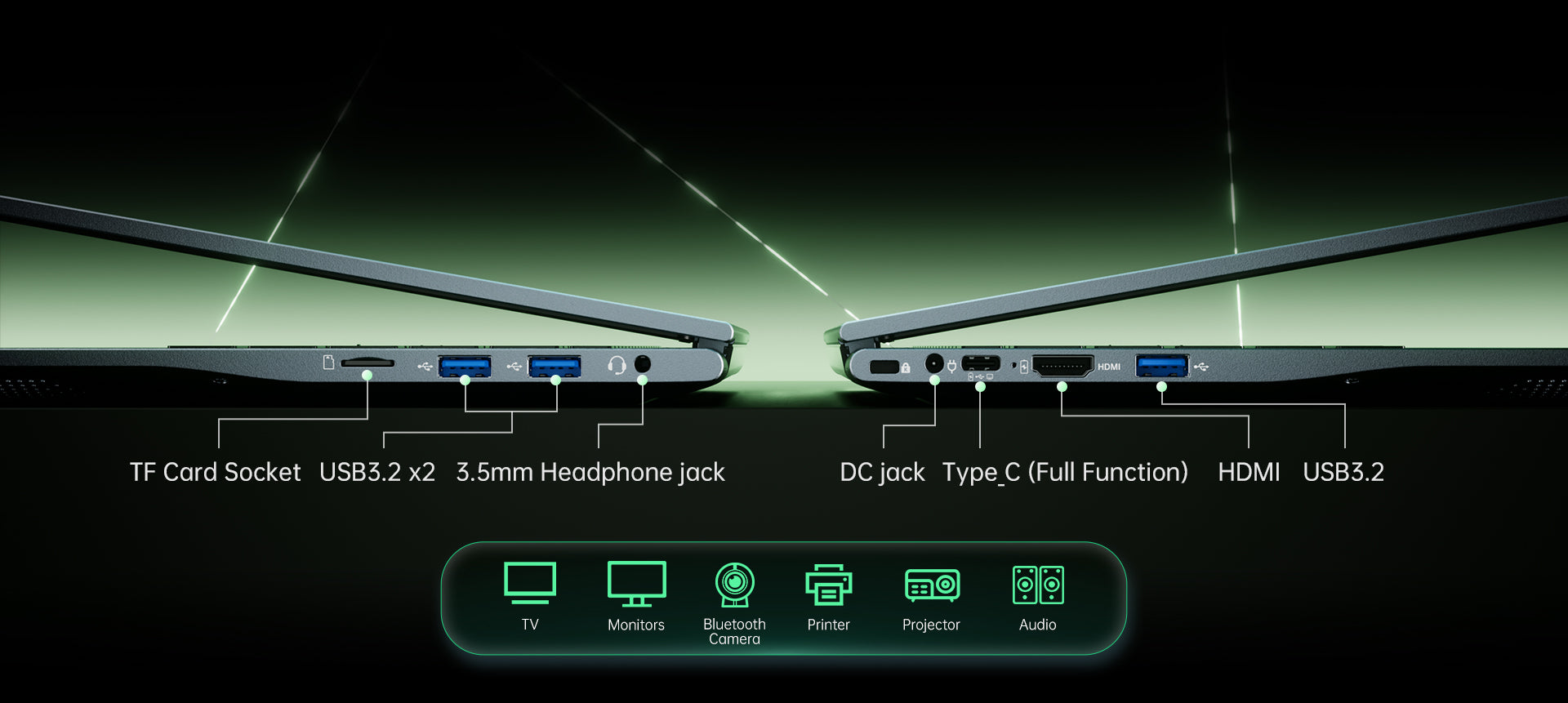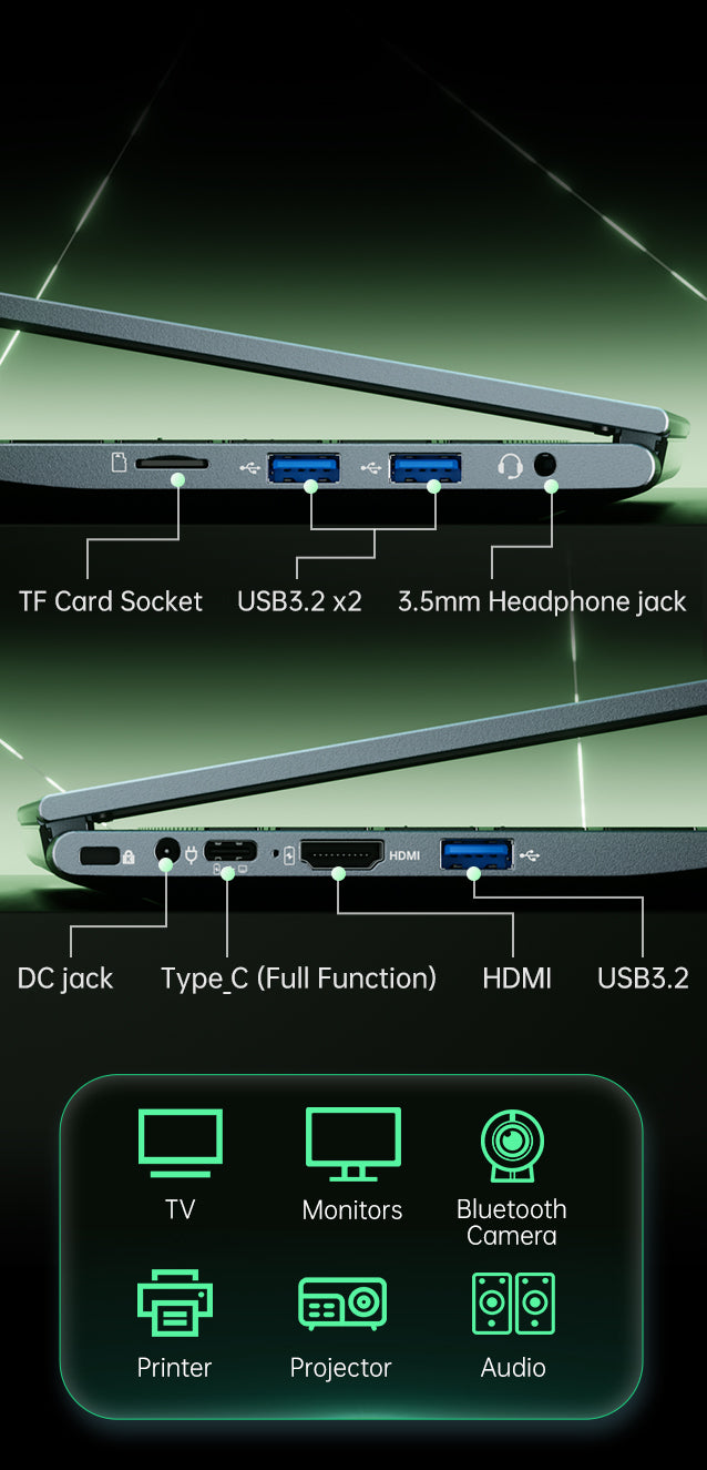 | Ports & Buttons | USB 3.2 *3 3.5mm standard headphone jack *1 DC IN *1 HDMI 1.4 *1 Type-C (full-function) *1 TF card slot *1 Keyhole*1 |