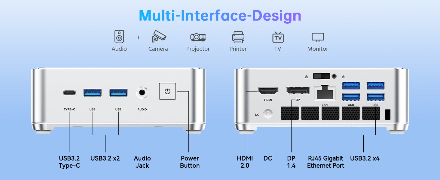 HDMI 2.0 * 1 USB3.2 Gen2 Type-C*1 DP1.4b* 1 3.5mm Phone Jack * 1 |